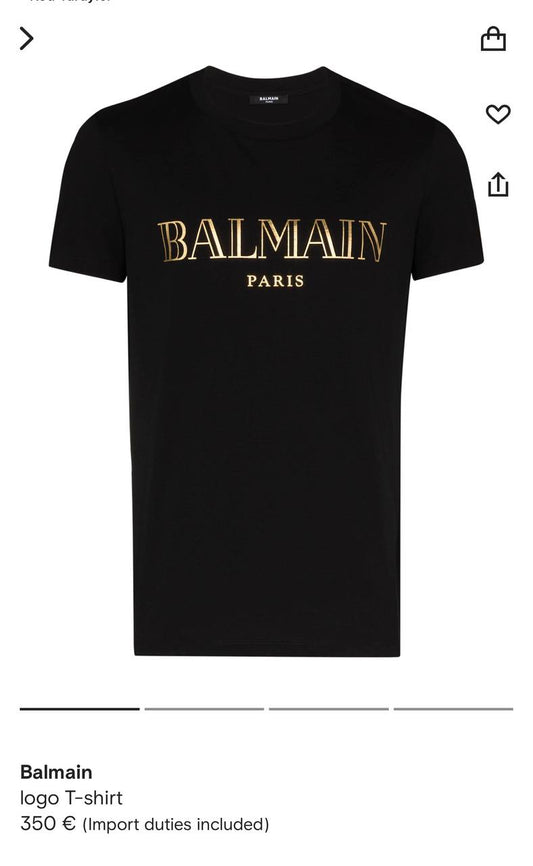Balmain Gold Logo-Print Herren T-Shirt Schwarz