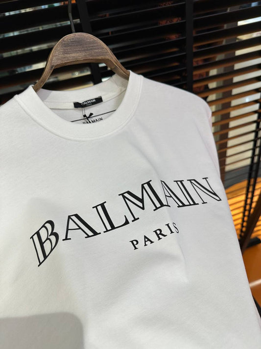 Balmain Schwarz Logo-Print Herren T-Shirt Weiß
