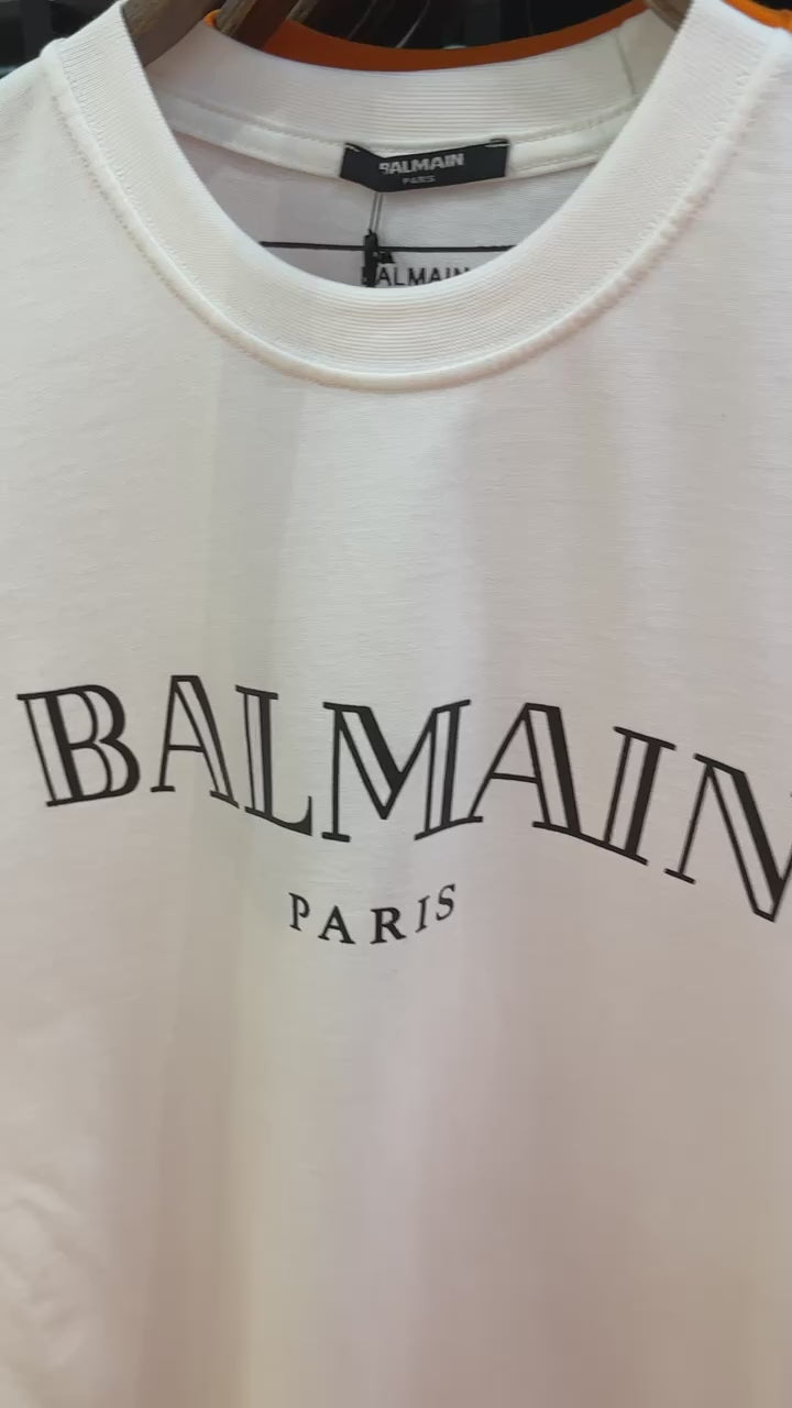 Balmain Schwarz Logo-Print Herren T-Shirt Weiß
