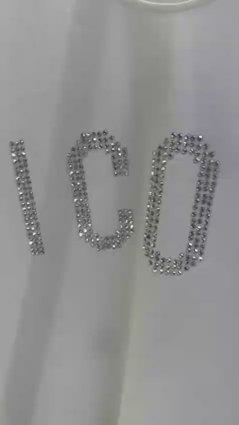 DSquared2 Icon Front Logo Steinbesatz Herren T-Shirt Weiß