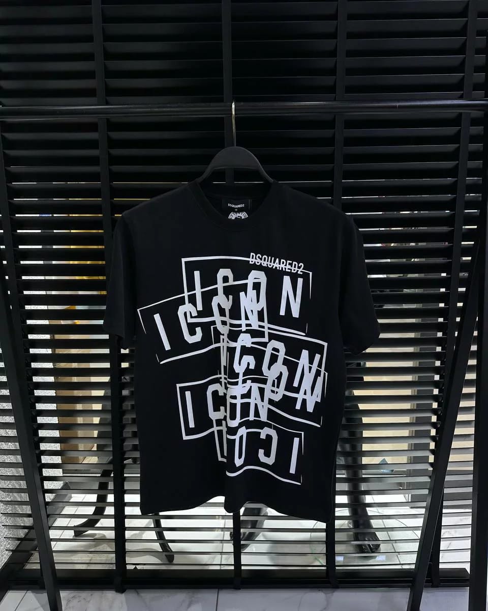 DSquared2 Icon Multi Front Logo-Print Herren T-Shirt – Urbane Vielfalt in Tiefschwarz