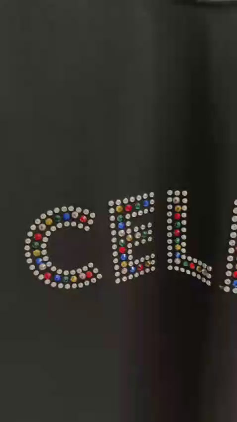 Celine Front-Logo Colored Steinbesatz Herren T-Shirt Schwarz